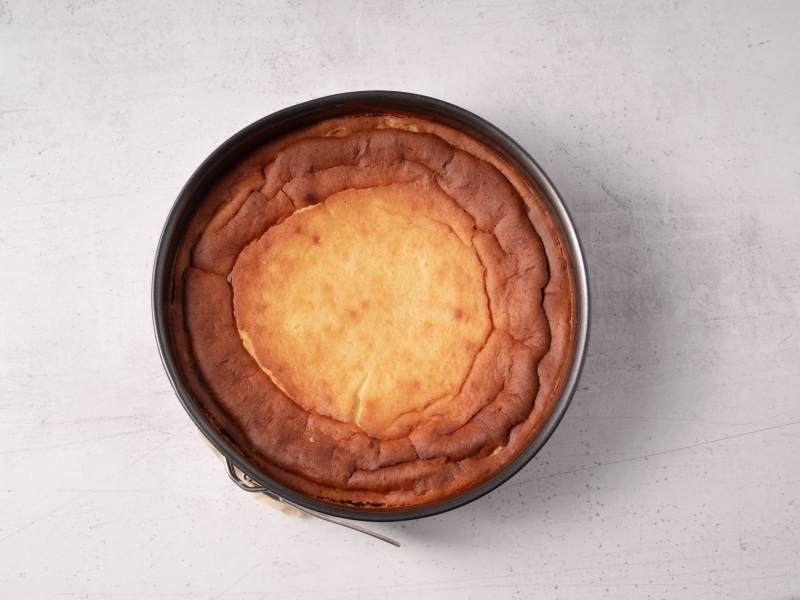 Sernicz piecz w kąpieli wodnej: 10 minut w 180°C. Po tym czasie zmniejsz temperaturę do 120°C i piecz kolejne 90 minut.