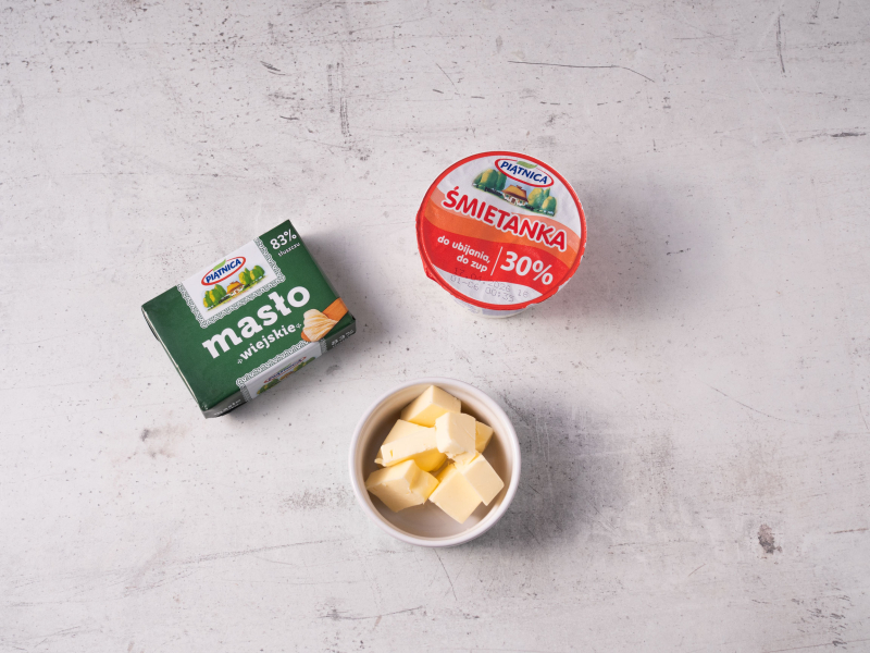 Masło wyjmij wcześniej z lodówki - powinno być miękkie. Pokrój w niewielką kostkę.
