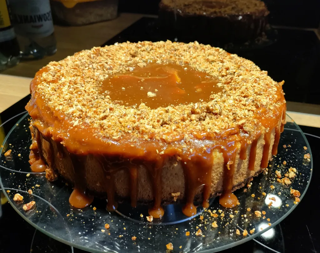 Kremowy, lekko słony z wyrazistym smakiem prażonych migdałów. Całość dopełnia warstwa gęstego sosu karmelowego ze szczyptą soli.